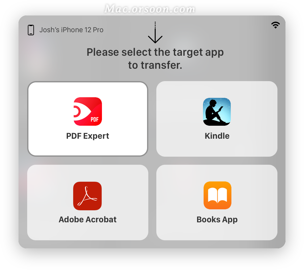| 在Kindle中阅读 作为第三方iOS应用程序支持的一部分,您现在可以将书籍文件传输到Kindle中,而不是将其传输到本地iBooks.app。拖放文件时按住ALT(while)键,然后选择“ Kindle”作为目标应用程序(*这要求在您的设备上安装Kindle.app)。 | ![]() |