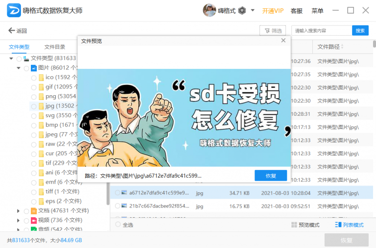 用嗨格式数据恢复大师扫描过后,在恢复结果中双击文件就可以对其进行预览,预览出来没问题就说明可以成功恢复了。