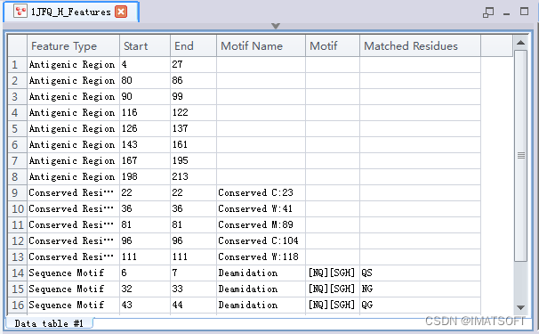 该表格中显示了该蛋白序列中预测出的19个sequence feature及每个feature所对应的序列。