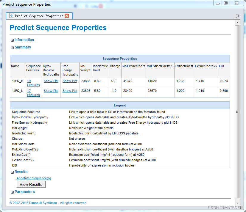 在Report页面中可以看到Summary一栏显示了所有基于蛋白序列预测计算得到的信息(图4)。