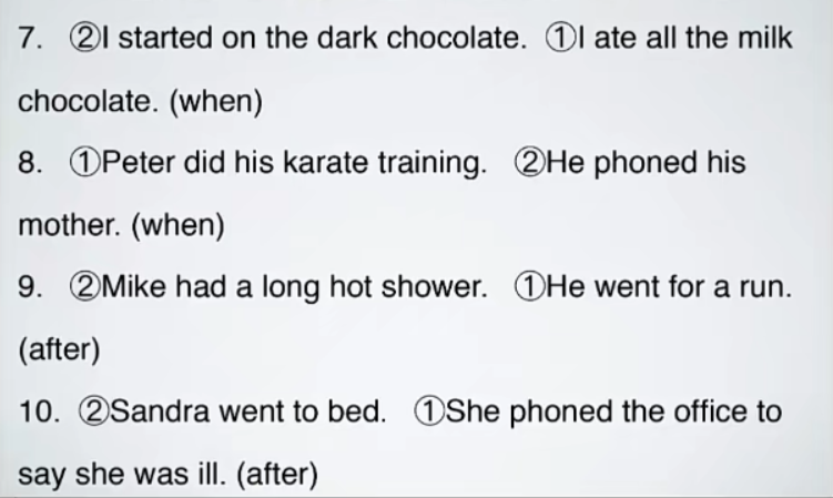 10.After Sandrea had phoned the office to say she had been ill, she went to bed.