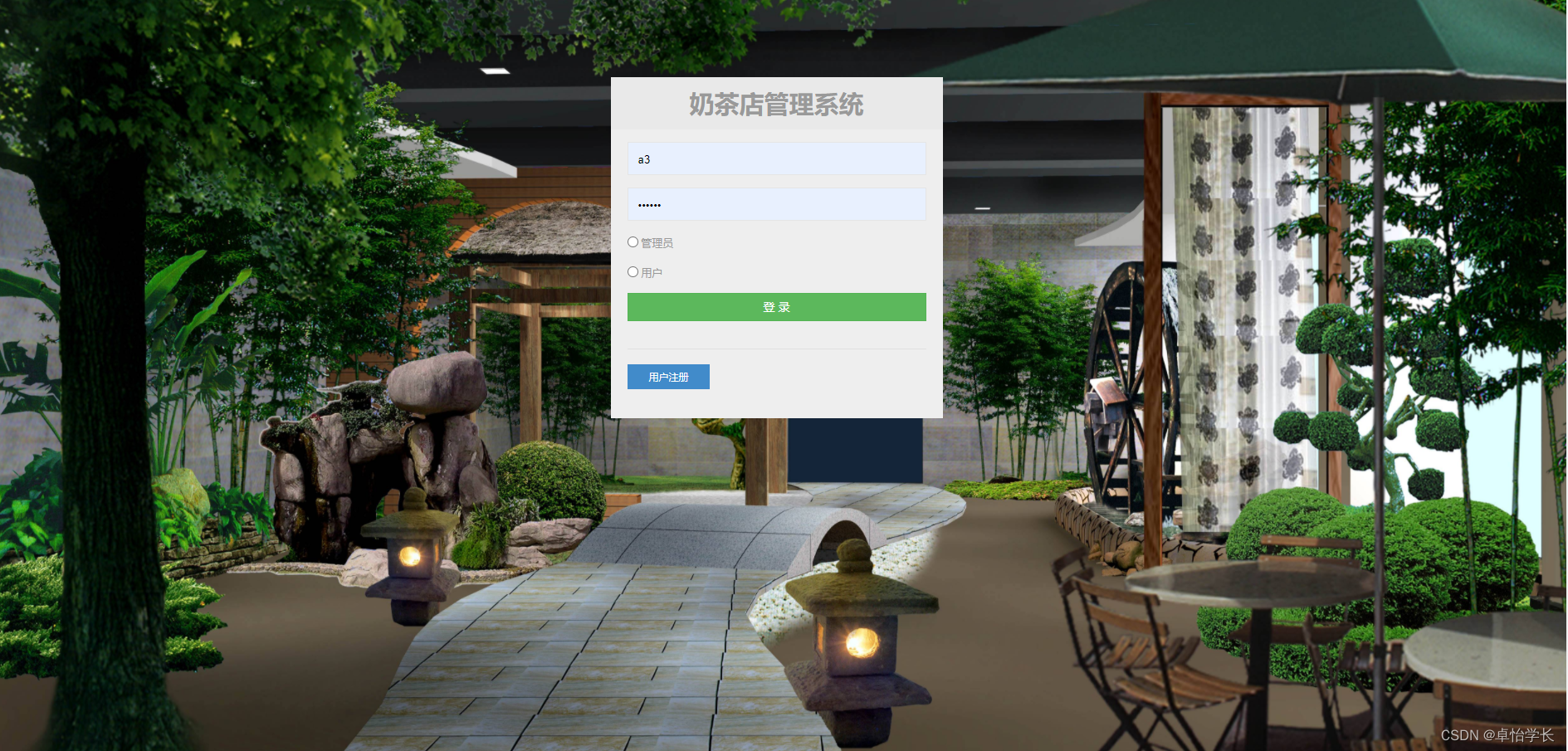 使用奶茶店管理系统的用户分管理员和用户两个角色的权限子模块。