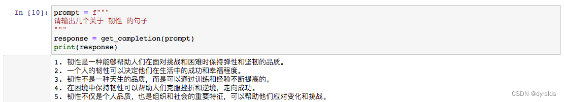 让GPT用 韧性 这个词造句,不加引导的输出: