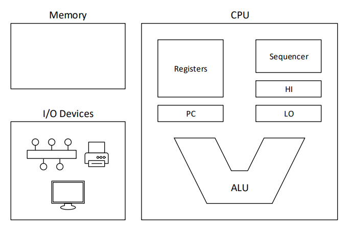 MIPS处理器架构方框图的简化版,Sequencer代表流水线Pipeline.
