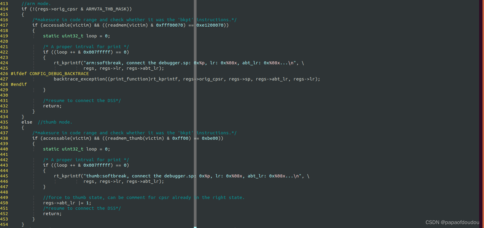 那么,不禁要问,在Linux中,内核作为一个超然的独立,客观,第三方存在,可以检测调试条件,控制调试过程,如果对于RTOS裸机程序呢?所有的内容都编译,链接在一起,没有一个独立观察者存在,这个时候,可以达到这种执行到调试指令便立刻和调试器建立成功连接的效果吗?