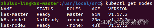 返回k8s-master虚拟机查看集群节点信息,输出如下: