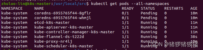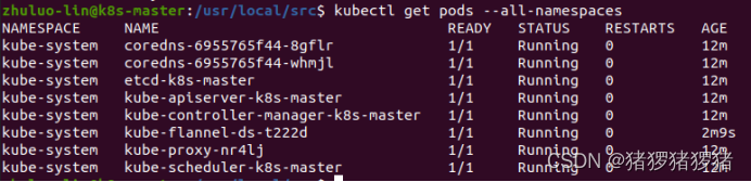 >kubectl apply -f /usr/local/src/kube-flannel.yml
