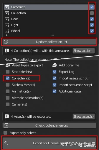 与集合一起导出只会像静态网格物体一样导出集合。