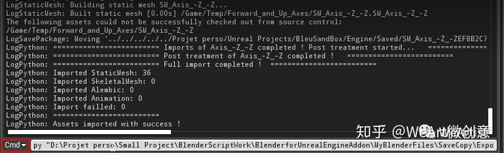 py "C:\[Folder]\ImportSequencerScript.py"和您的ImportSequencerScript文件位置。- 默认情况下,文件ImportAssetScript.py放置在文件夹ExportedFbx \中的搅拌器文件的位置。