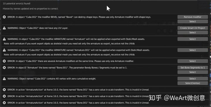 - 如果更改包含对撞机的对象的名称,则需要单击“检查潜在错误”按钮以更新所有对撞机的层次结构名称。