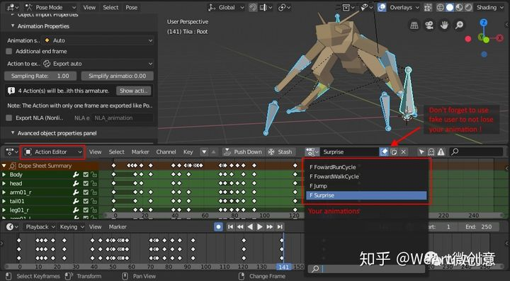 当然可以用骨骼导出动画。您可以使用“摄影表”窗口中的“动作编辑器”在一个场景中包含多个动画,也可以使用NonLinearAnimation。对于动作: