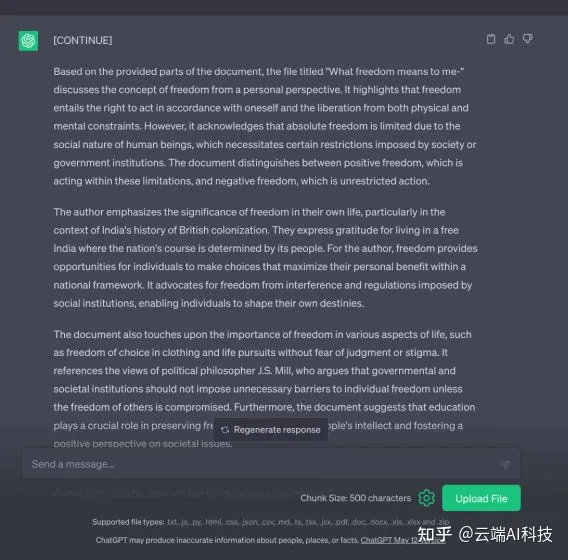 6. 你现在可以提出问题,ChatGPT 将会从上传的文档中回答。多么牛啊?