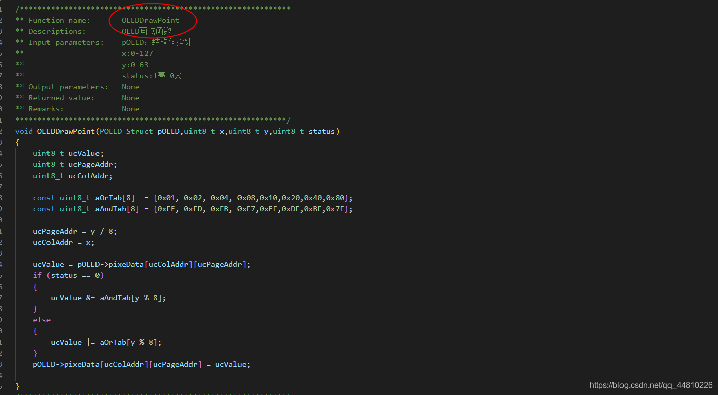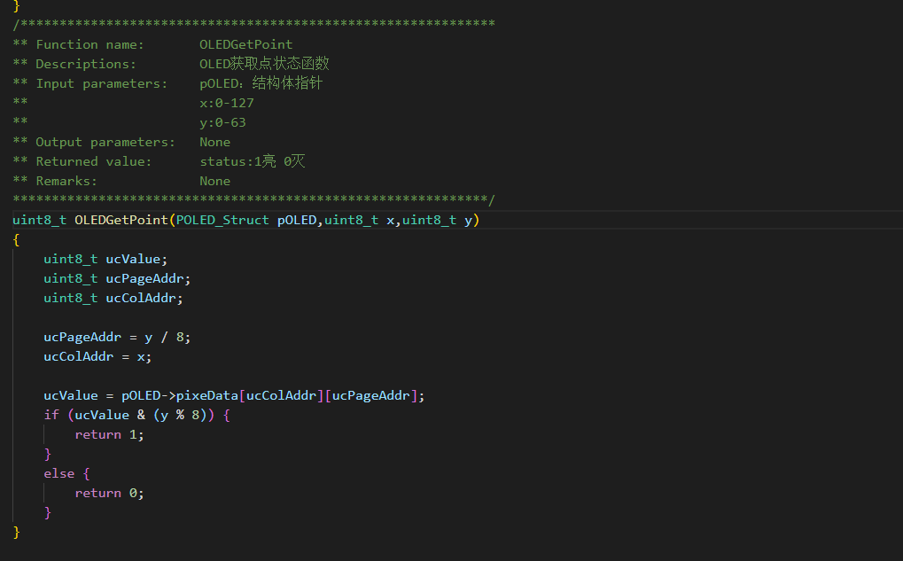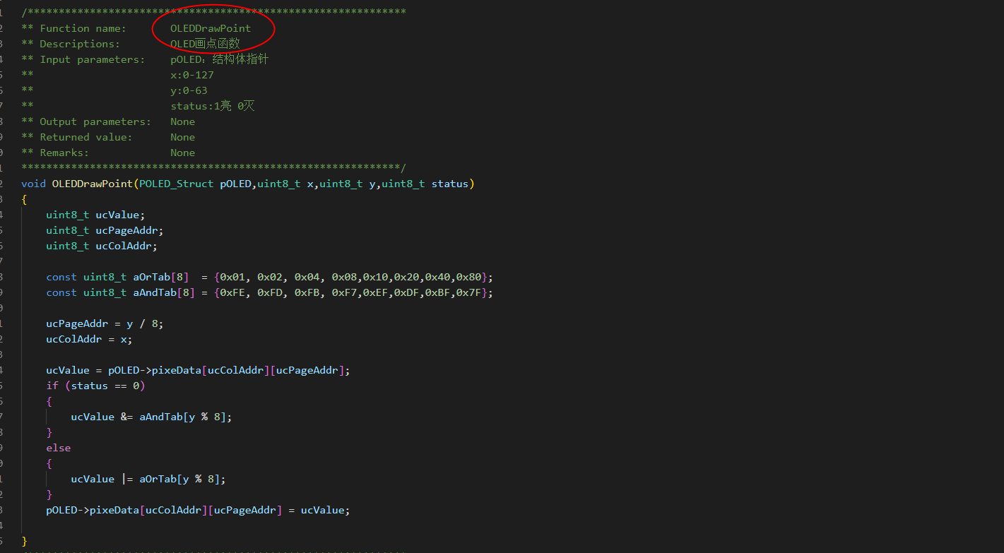 OLED驱动底层函数,问同事要了正点原子的驱动,然后把这个函数替换一下,就可以实现简单的显示功能,最重要的是再某个位置显示一个点的函数。