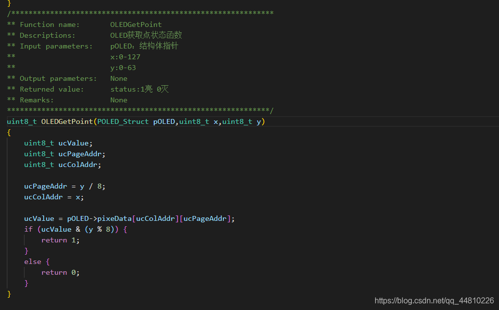 这里查询像素坐标点的函数要自己实现以下,能够查到当前点的像素状态。【这里通过设置的函数数组记录,然后查询的时候从数组往外拿】