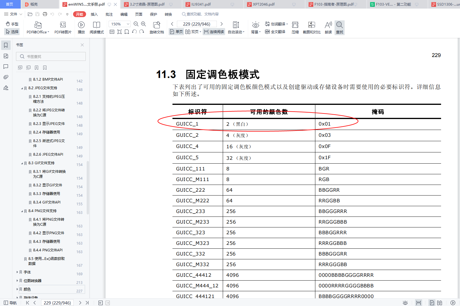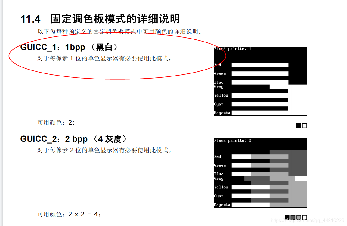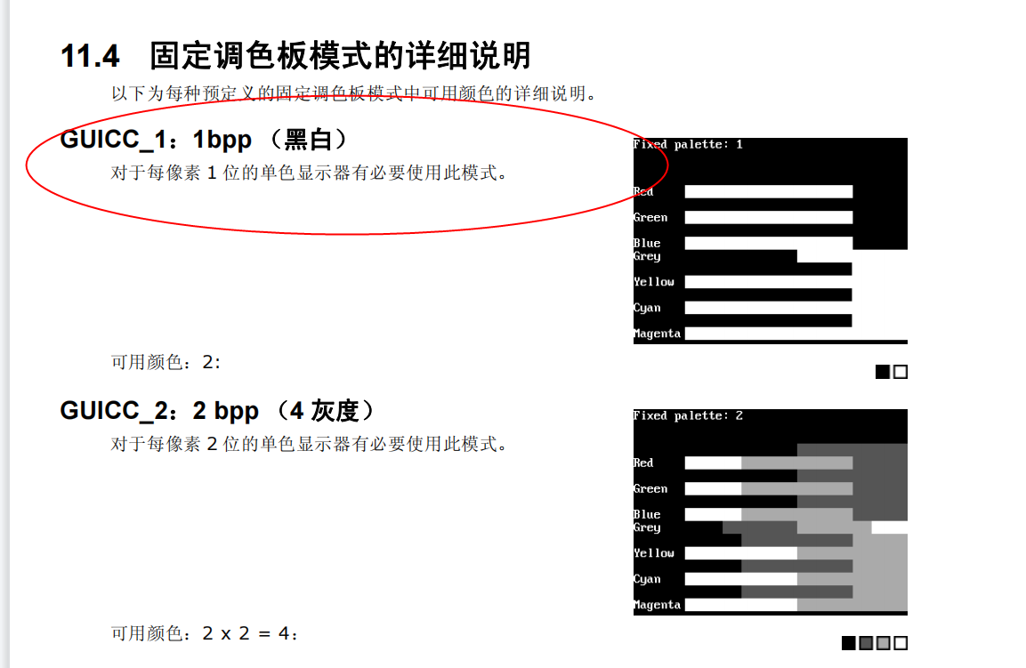 通过上面的函数LCD_X_Config()链接驱动,配置屏幕颜色。这里使用的我们上面定制的屏幕驱动GUIDRV_TEMPLATE,然后使用单色模式GUICC_1。【如果有合适的驱动可以直接使用自带的驱动,以及色彩模式】关于这两个参数 在中文手册中可以找到说明