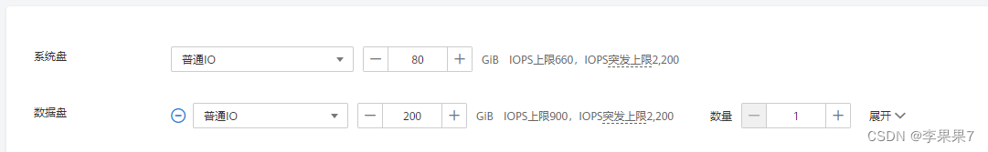 填写:硬盘类型,硬盘大小,数据盘类型,数据盘大小,数据盘数量。