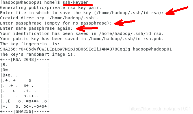 在hadoop1节点登陆hadoop用户,执行"ssh-keygen"命令;