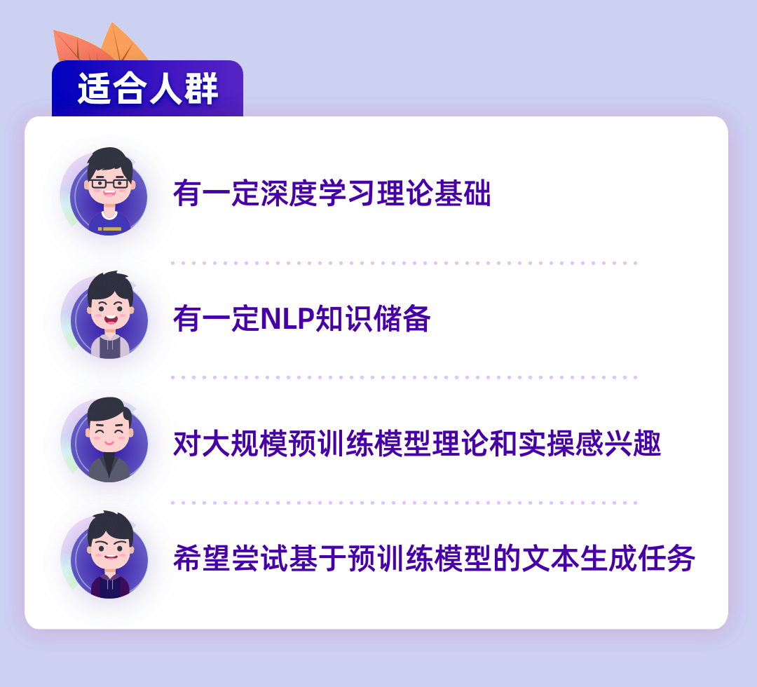 课程配备有专职班主任督促学习、群内互动交流干货分享不断、更有资深助教为大家在线答疑解惑。深度掌握GPT系列模型,帮助你找到快速入门自然语言处理——文本生成方向!