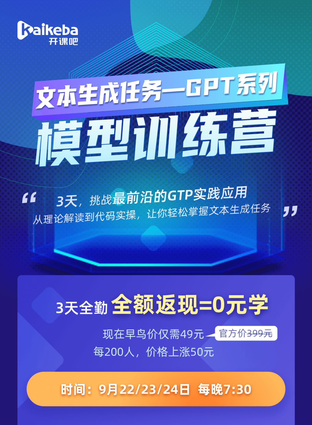 本次训练营开课时间(9月22/23/24日 19:30),希望各位同学报名后: