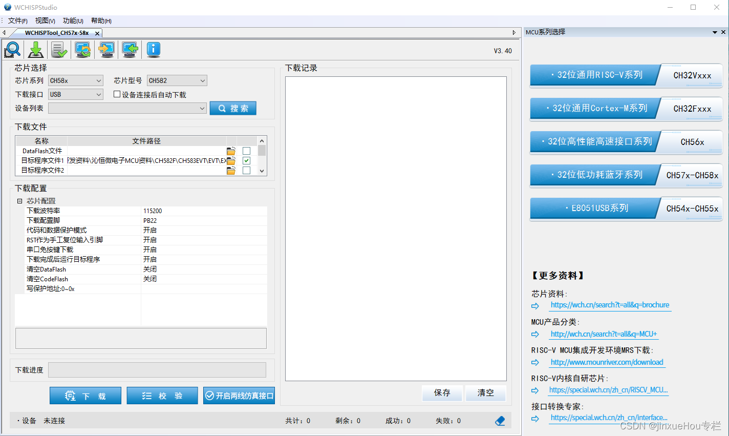 最近沁恒微电子的程序烧录软件已经更新,最新版本如下所示: