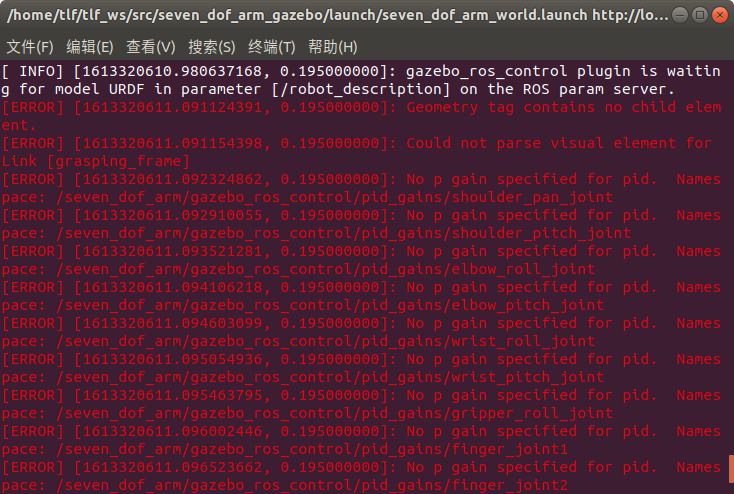 [ERROR] [1571212497.739111392, 0.166000000]: No p gain specified for pid. Namespace: /gazebo_ros_control/pid_gains/shoulder_pitch_joint -