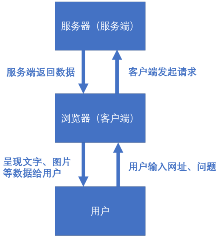 我们平时使用浏览器,大致就是这样的一个过程。这里有两个重要的名词: 服务端与 客户端。