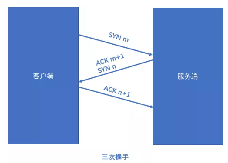 TCP传输起始时,客户端、服务端要完成三次数据交互工作才能建立连接,常称为三次握手。可形象比喻为如下对话: