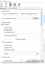 4)设置参数:点击工具栏下方的Analysis parameters,并在下方选择Use 8 cell neighborhood rule,8近邻相比4近邻更为平滑,但计算也相对较慢。勾选Patch metrics、Class metrics、Landscape metrics以及Generate patch ID file。