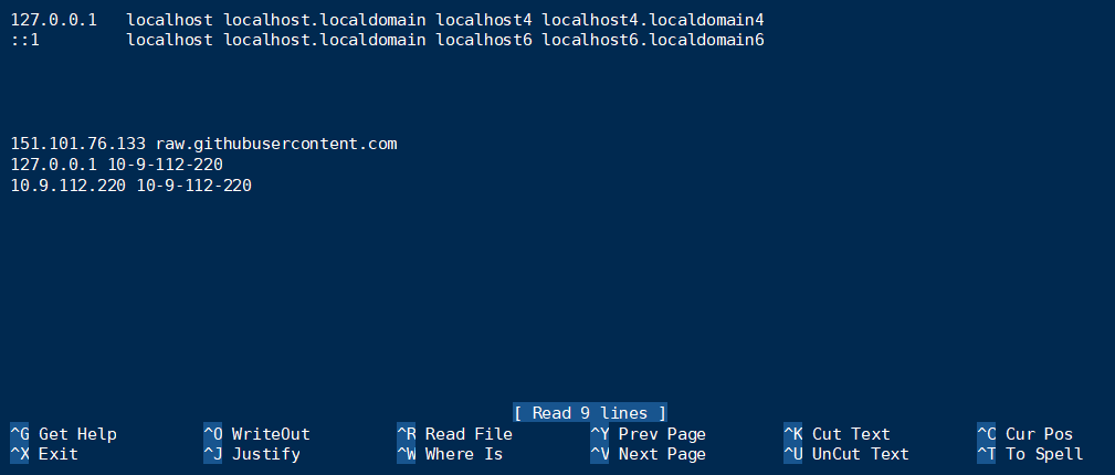 最后行加上修改后的IP地址及对应的主机名 eg: 151.101.76.133 raw.githubusercontent.com