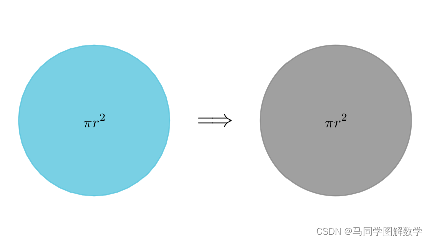 在上一个视频中,我们根据内接多边形不断靠近圆的思想,推出了无穷边形的面积为 ,继而得到了圆的面积为