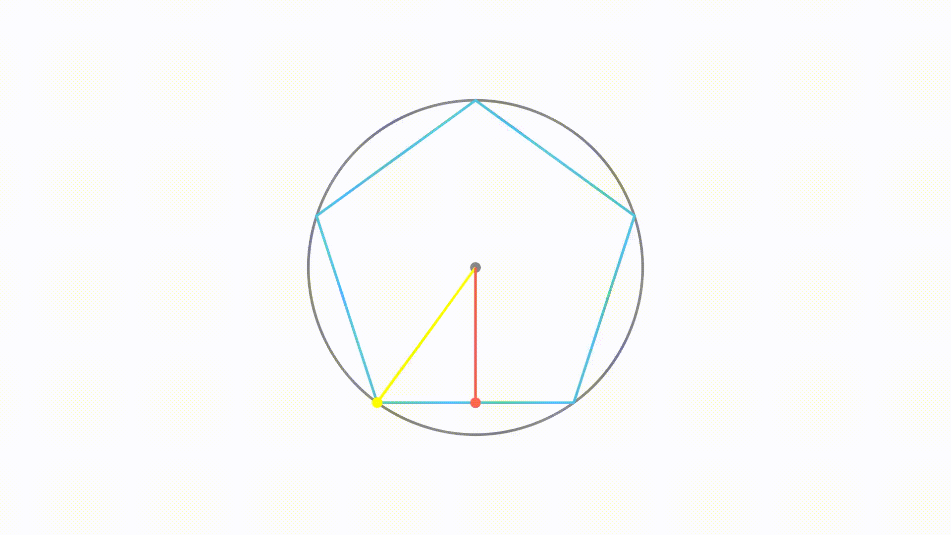 还是画出内接正五边形,连接圆心和顶点得到最长的距离,假设其长度为 ,过圆心向其中一条边作垂线得到最短的距离。容易知道由二者产生的夹角为
