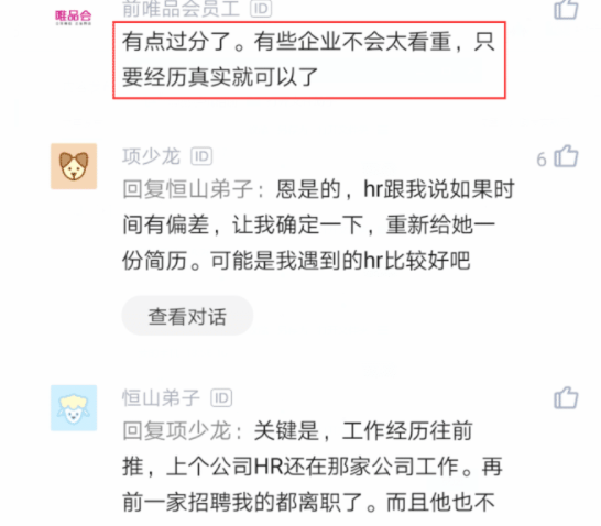 还有一部分网友表示:大公司都是很严格的,他们从来都不缺人才,像你这样还想着瞒天过海的是绝对不能被允许的,一经发现肯定是要被取消录用资格的。