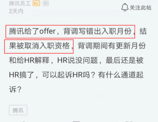 收到腾某Offer,后来HR告知背调不通过,网友:...!