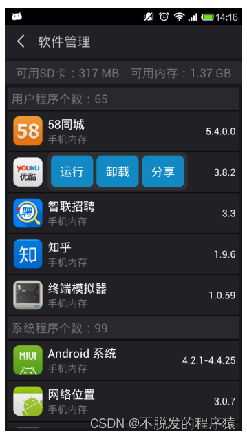 按用户程序和系统程序分类管理手机中的应用程序,可以查看、执行、卸载和分享用户程序。而系统程序只能被查看和执行。