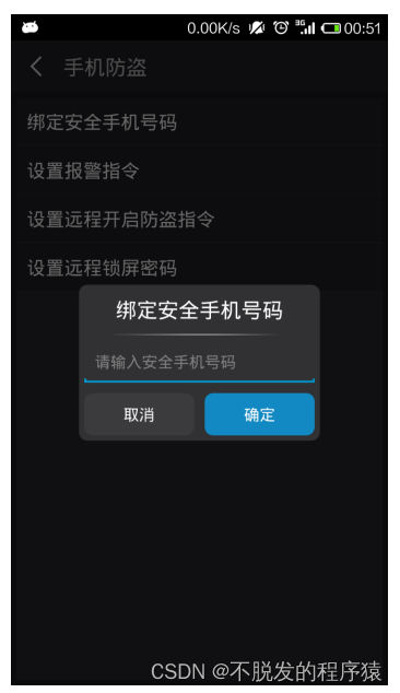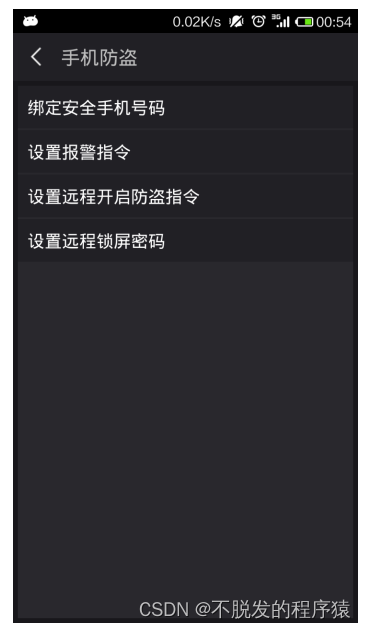 手机防盗界面主要是编写ListView及其适配器,根据用户点击不同的条目弹出不同类型的自定义对话框,有些对话框功能不同,但是内容的格式完全相同,这就需要重写自定义度画框的构造方法,根据传入参数的不同显示不同内容和类型的自定义对话框。