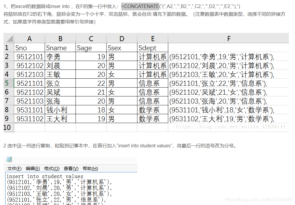 excel数据要导入到mysql时,出现乱码等问题,导入不成功,最好的方法是转换为insert语句