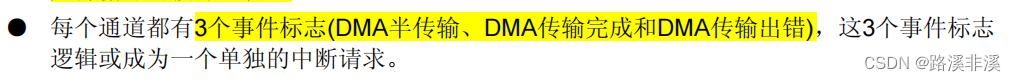 DMA在初始化时,会设置一个缓冲区buffer_size,当缓冲区满的时候,就会产生中断,最常见的就是传输完成TC中断(可以不关心中断)。