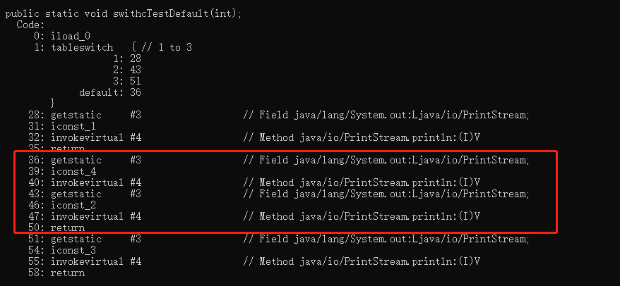 default:36 代码命令行至50行 (46-50行属于case 2 表达式的命令行)