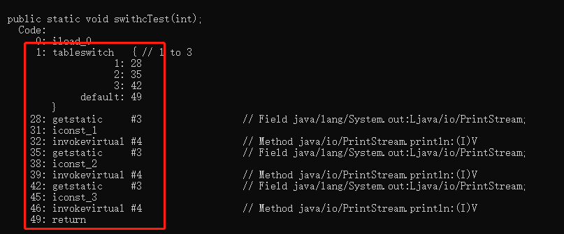 public static void swithcTestReturn(int a){switch(a){case 1:System.out.println(1);return;case 2:System.out.println(2);return;case 3:System.out.println(3);return;default:System.out.println(4);return;}}