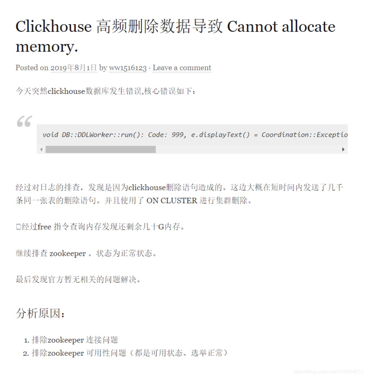 1、Clickhouse 高频删除数据导致 Cannot allocate memory.