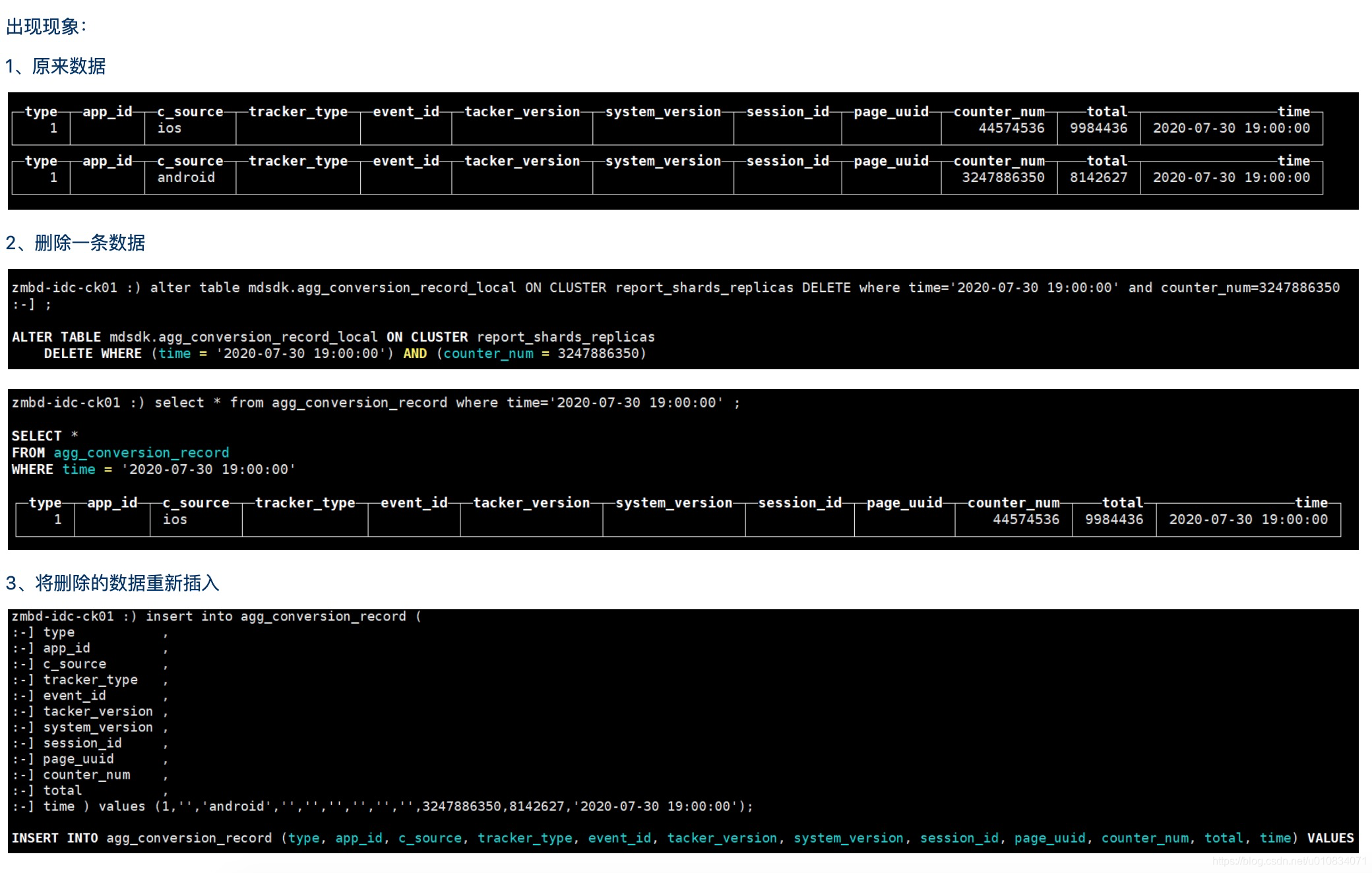 5、Clickhouse 删除数据,然后插入相同的数据不显示