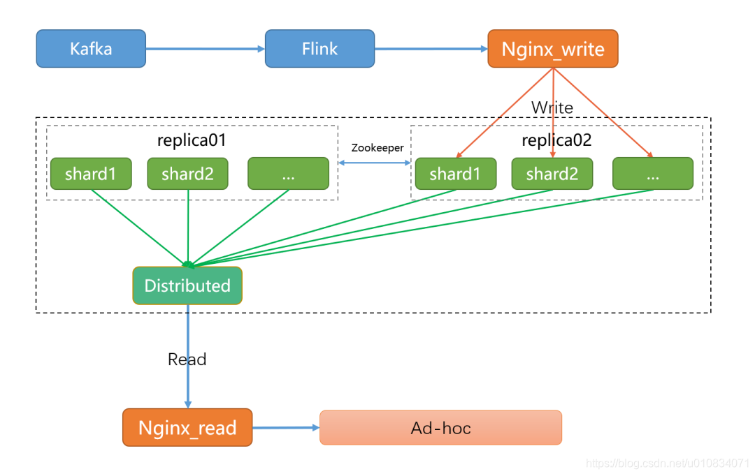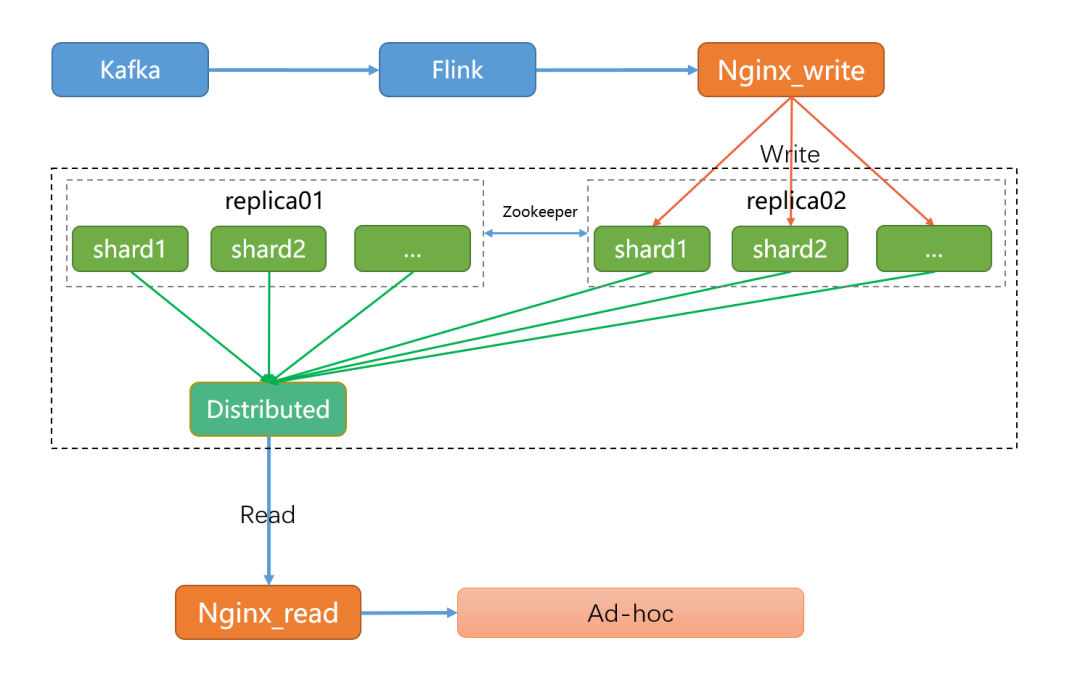 外面一层使用nginx负载写本地表,然后使用nginx负载均衡查分布式表即可。
