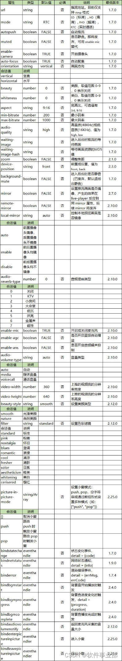 2.tip:live-pusher 默认宽度为100%、无默认高度,请通过 wxss 设置宽高。