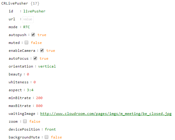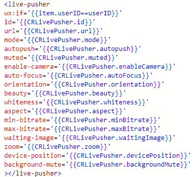于是想到通过双向数据绑定给组件动态添加属性,从而通过修改live-pusher的属性达到开关摄像头的目的: