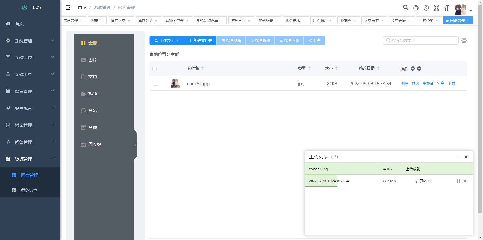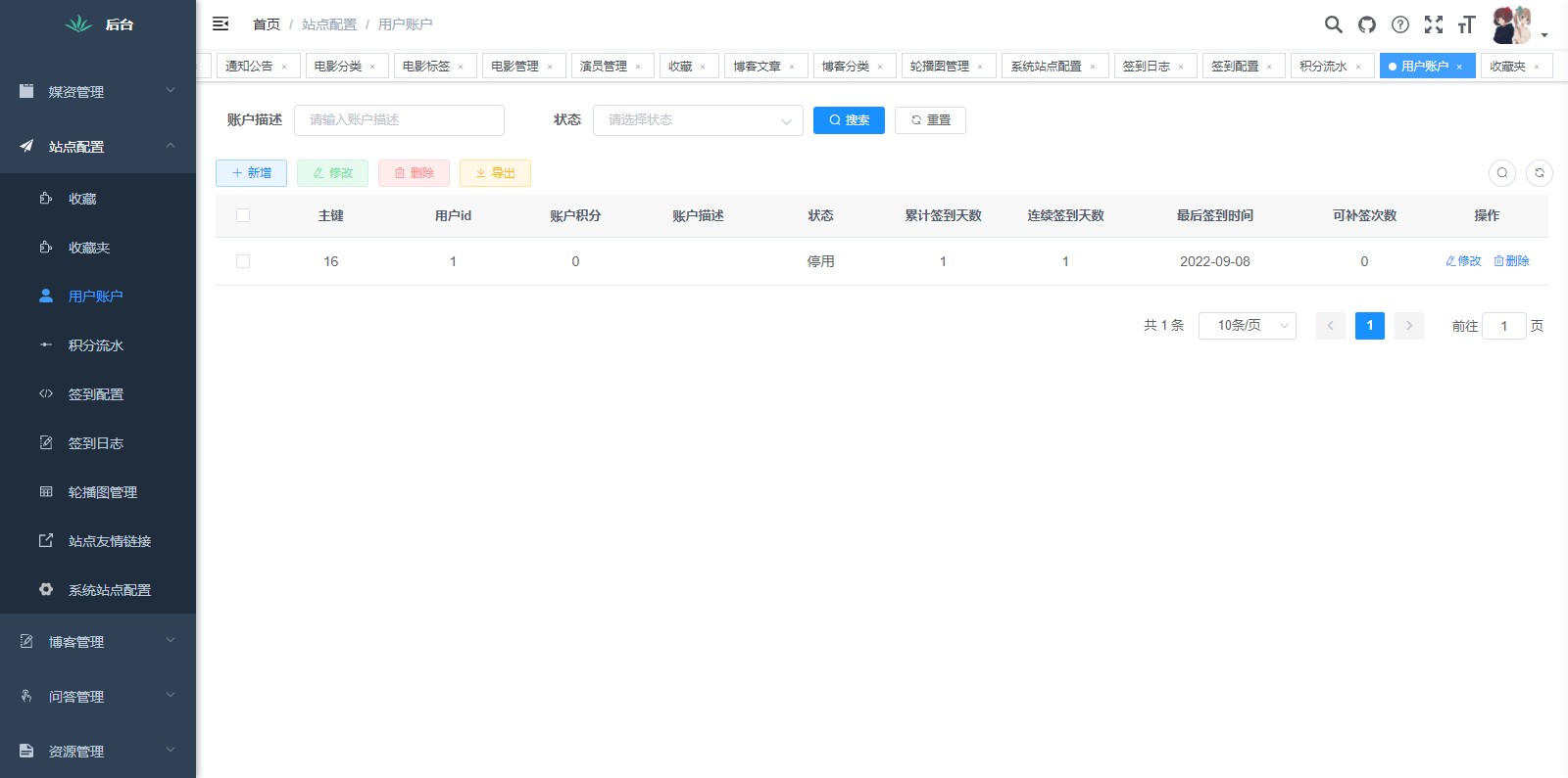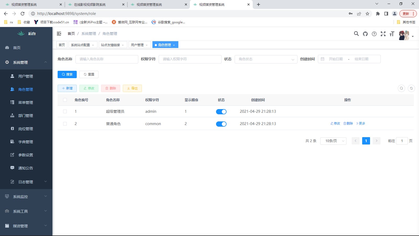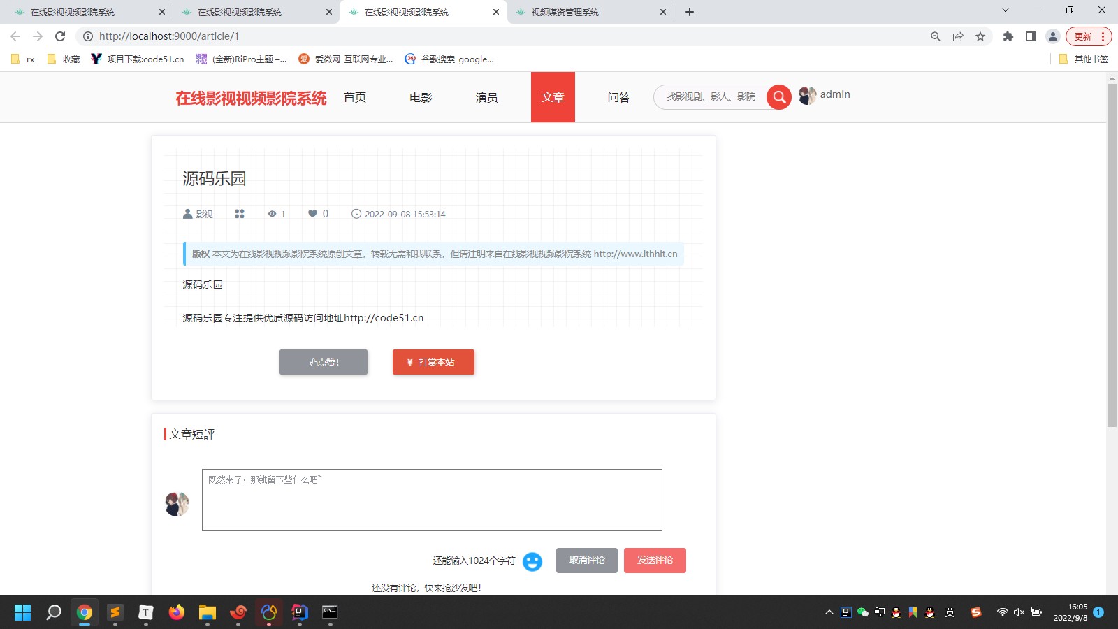 基于SSM+SpringBoot+Vue前后端分离的在线影视视频影院管理系统,包含普通用户,超级管理员角色,整体功能包含视频观看,签到,收藏,登录注册,检索,文章查看,演员整容列表,个人中心,个人信息修改,收藏列表,密码修改,用户管理,角色管理,菜单管理,岗位管理,字典管理,参数设置,通知公告,日志查看,部门管理,电影分类管理,电影管理,演员管理,电影标签,站点配置信息,博客文章管理,标签管理,专题管理,博客分类,网盘资源等。