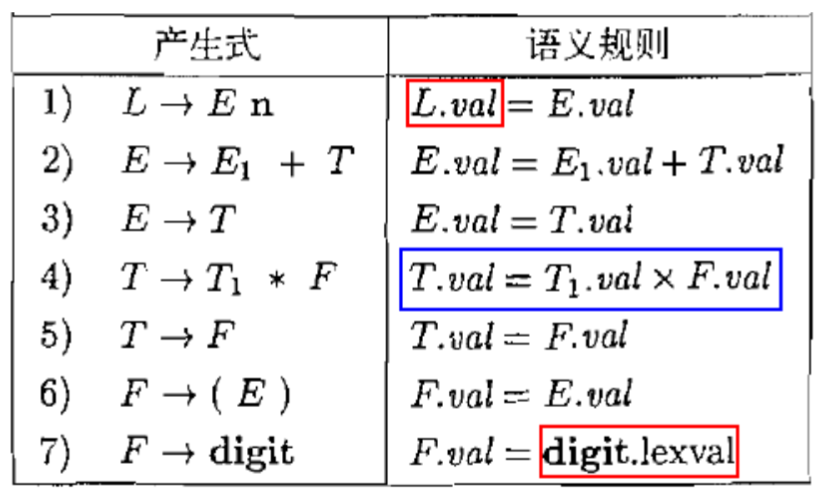 - 当LR语法分析器进行归约时,计算相应节点的综合属性值