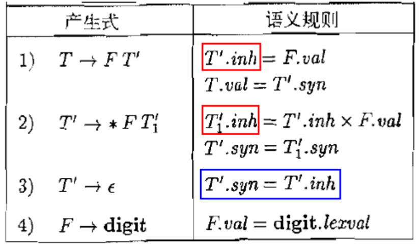 1.6.4. 继承属性T’.inh用于从左向右传递中间计算结果