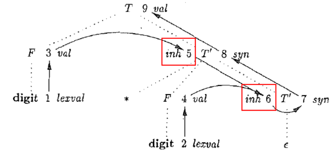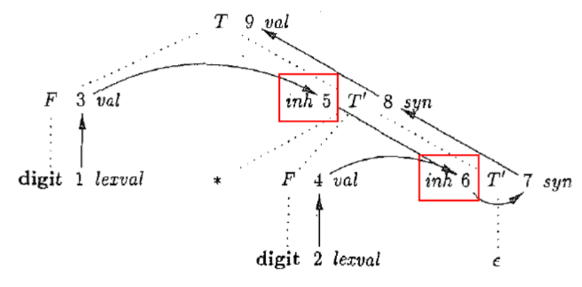 1.6.2. T’有一个综合属性syn与一个继承属性inh