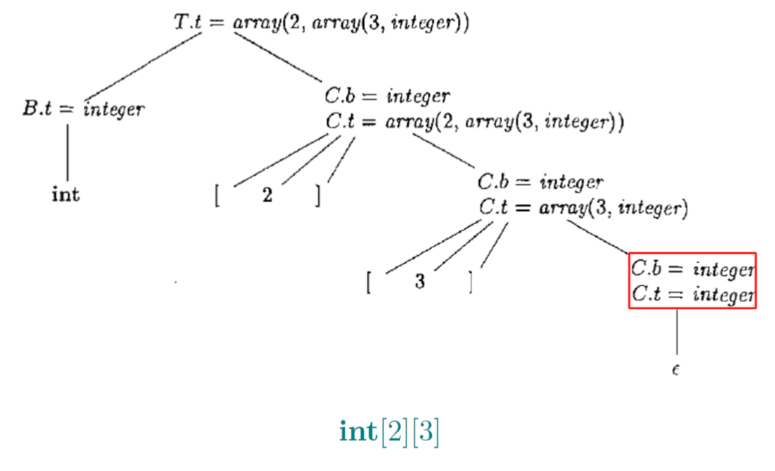 - 语义规则用以生成类型表达式array(2, array(3, integer))