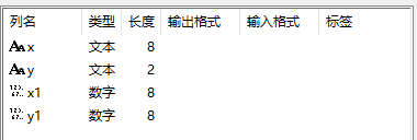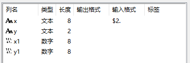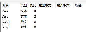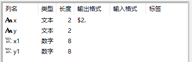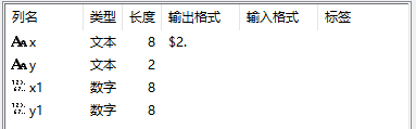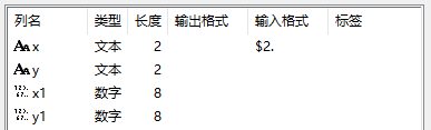 data fs;format x $2.;input x$ y$2.;x1=x+1;y1=y+1;cards;